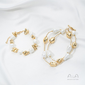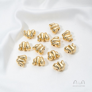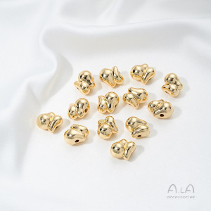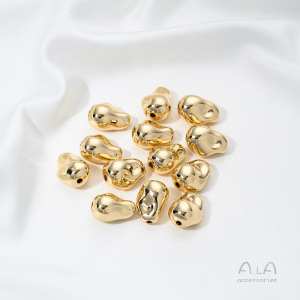 卸売ビーズ、色保持力の高い14Kゴールドフィルドバロック型不規則なスルーホールビーズ、DIYブレスレット、ネックレス、ジュエリービーズ