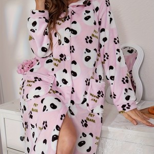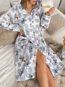 秋冬季可爱卡通印花长款连帽懒人毯居家浴袍保暖舒适柔软亲肤睡袍