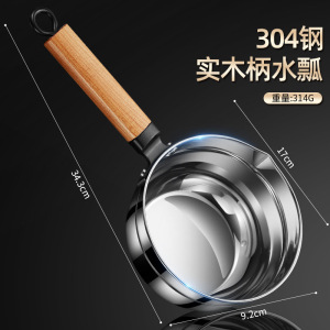 新しいステンレス鋼の水ひしゃく、厚みのある大きな水ひしゃく、家庭用キッチンの木製ハンドル、水やりや漂白用の水ひしゃく