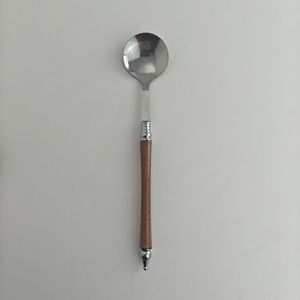 インターネットセレブステンレス鋼スプーン模造ローズウッドラウンドスプーンロングハンドルラウンドヘッドスプーンデザートスプーンレストランドリンクスプーン