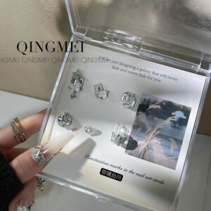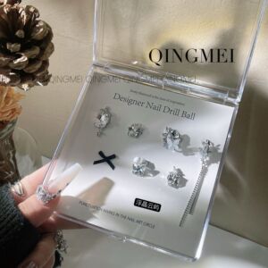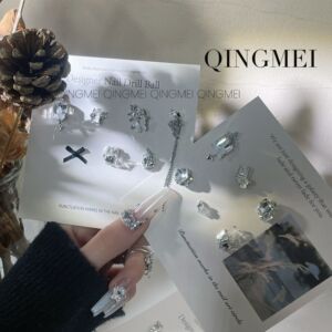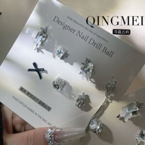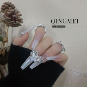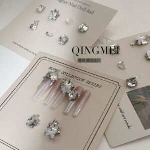 青オリジナル超きらりとした豪華な風高級な純白異性の積み重ねのウェディングドレスの甲とセットの完成品のネイル