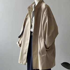 工装立襟トレンチコート春秋新商品ゆるい中長タイプカジュアルコート