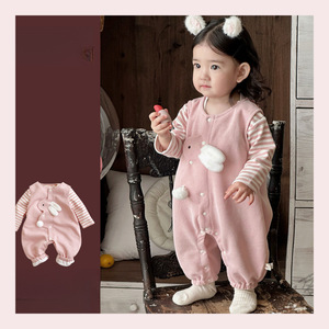 ベビー春秋服、ジャンプスーツ、ベビーオーバーオールスーツ、女の子トップス、生後1ヶ月、1歳のお出かけ満月服