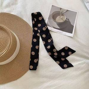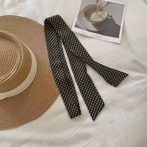 2025 春夏の新韓国スタイルのロングシルクスカーフレトロ水玉チェック柄ネックスカーフヘアネクタイバッグリボン装飾