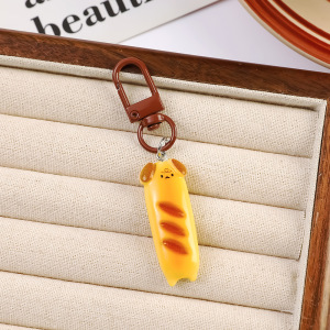 ウサギとクマのバゲット型おもちゃキーホルダー、漫画風バッグチャーム、カップルや親友へのギフト、可愛い漫画風アクセサリー