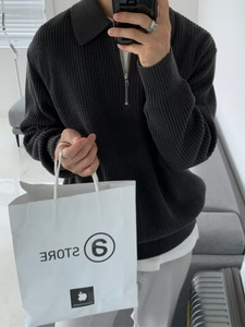 ハーフジップセーターメンズ春秋和風レトロハイエンドレイジースタイルラペルセータールーズカジュアルセーター