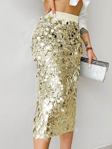 欧米で人気のクロスボーダーファッション、無地で上品なハイウエストタイトミディ丈スパンコールスカート