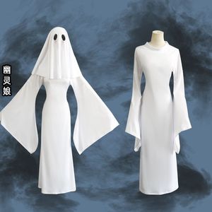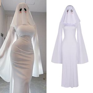 ハロウィンゴーストコスチュームマダムアプリコット女装コスツーウェアスリムフィットホワイトロングスカート10ヘッドドレス