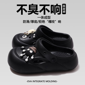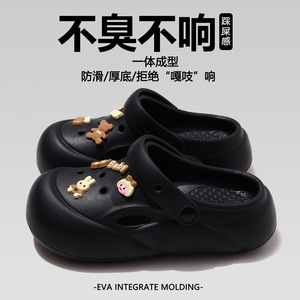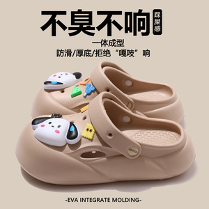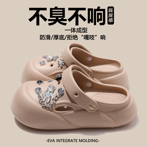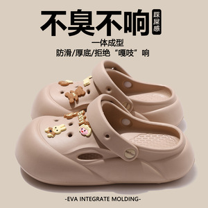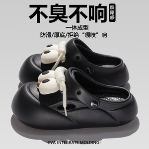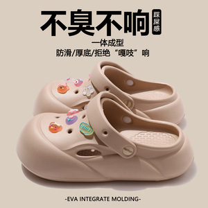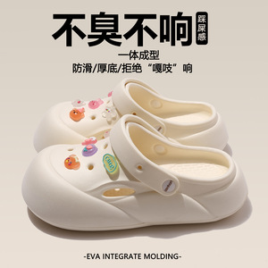 女性用厚底下駄、夏用アウターウェア、2025年新作EVA滑り止め、防臭ビーチサンダル、男性用つま先スリッパ