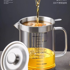 オイルポット、漏れ防止オイルタンク、フィルターオイルスラグポット、オイルボトル、家庭用キッチンラードタンク、漏れ防止メッシュポット、ガラスオイルフィルター