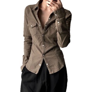 春と秋のアメリカンレトロスプリットラペルブレストシャツジャケットレディーススリムフィット多用途ボトムストップ