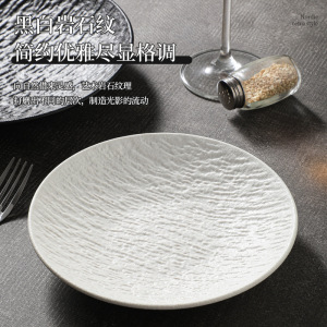 レトロな岩紋陶磁器洋食皿スープ皿魚皿ステーキ料理皿フロスト高級感白黒食器セット