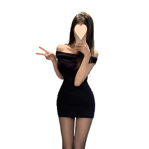 一字吊带连衣裙新款夏季辣妹纯欲风气质裙子小黑裙收腰紧身短裙