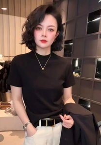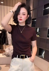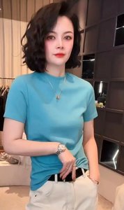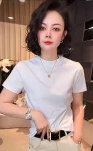 ドロップシッピングライブブロードキャストホットスタイル2025夏の新ファッションラウンドネック多用途ソリッドカラーTシャツスリムフィット半袖