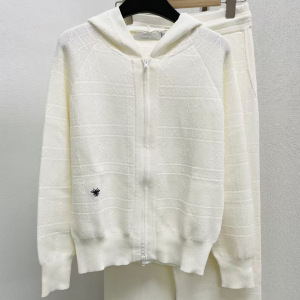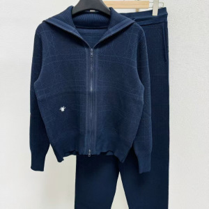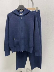 高定休闲运动针织套装女菱格纹小蜜蜂立领双拉链外套+阔腿裤