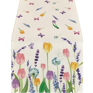 新しいクロスボーダーの新しい春の爆発品ユーカリの葉のデイジーラベンダーの蝶のヒマワリのテーブルの旗の台所のテーブルのマット