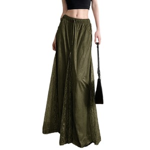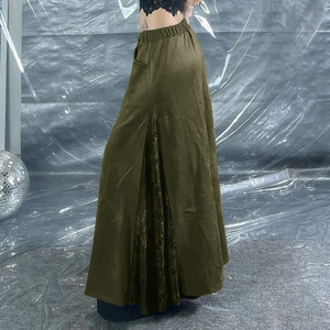2025新型の緑野レトロなファスナーはレースをつなぎ合わせて痩せたハーフスカートの女性がロープを引いて腰を収めて痩せたポケットのロングスカートの春を見せます。