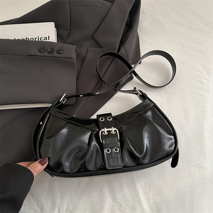 高級感新月バッグレディースバッグ韓国版insレトロしわシングル肩脇下バッグ小衆大容量女性バッグ