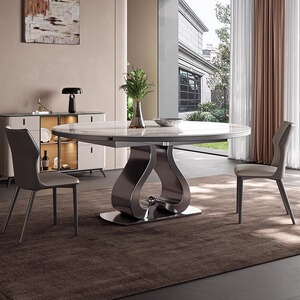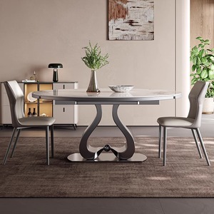 岩板ダイニングテーブル、伸縮式折りたたみ、円形・正方形両用、電磁調理器付き、多機能デザイナー家庭用ダイニングテーブル、大型円形テーブル