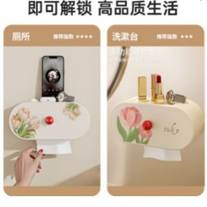 チューリップバスルームペーパーボックス壁掛けパンチフリー多機能ペーパータオル収納ボックストイレットペーパー収納ラック