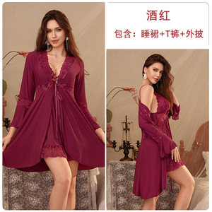 春夏純欲氷糸寝スカートレース長袖2点セットアンドロメダ風宮廷はおしゃれな家庭服を着ることができる