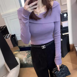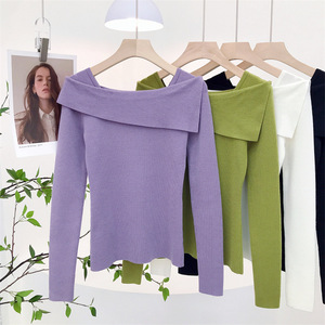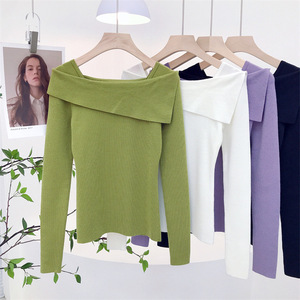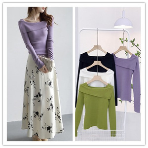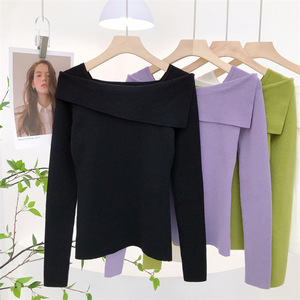 6775 春フレンチレトロ気質不規則デザインワンショルダーカシミアスリムフィットオフショルダートップ