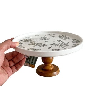 穆尼中古风木质高脚陶瓷托盘复古高颜值玄关收纳客厅茶几水果零食