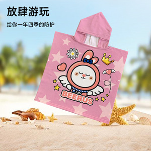 .2025新款带帽儿童浴巾斗篷宝宝连帽浴袍卡通可穿速干浴巾