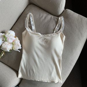 Pure Desire レース刺繍キャミソール レディース 胸パッド付き インナーとアウター 美背中デザイン 着痩せトップス 夏