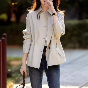 2025春秋の新型ハンサムなトレンチコートの女性のビーズの襟のループはウエストのショートコートのファッションのゆったりしていて、着痩せしています。