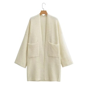 秋冬の太い針のセーターの女性のダブルポケットの韓国系のカジュアルな怠惰な風の中の長いセーターのコートのカーディガンの女性はゆったりしています。