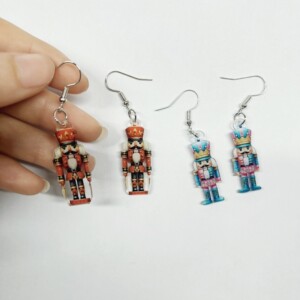 国境を越えた売れ筋くるみ割り人形アクリルイヤリングかわいい小さな兵士フラット 2D イヤリングはテーマのイベントに適しています