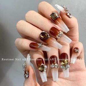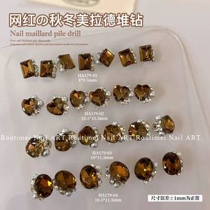 网红美甲饰品秋冬美拉德风格堆钻高级轻奢款式细闪鸽子蛋长方饰品