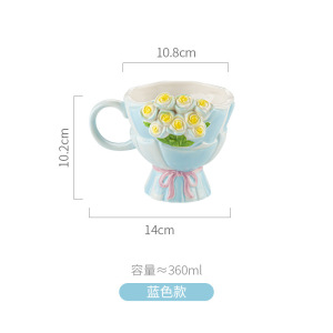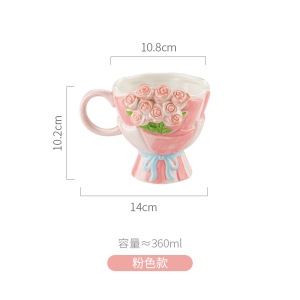 クリエイティブな手描きのレリーフ立体ローズセラミックマグかわいい背の高いデザートカップ朝食ミルクコーヒーカップ
