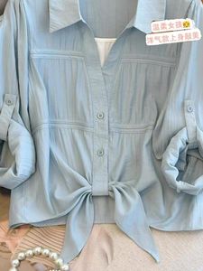 设计感假两件系带衬衫女年春季新款韩版宽松长袖独特显瘦上衣