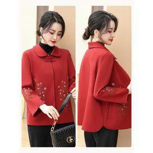 ママの秋コート、中高年女性の秋カーディガン、ラペルジャケット、ショート春秋スタイルウインドブレーカー