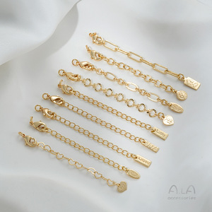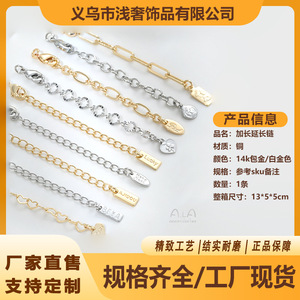 延长链批发14K包金小长方吊牌椭圆爱心尾链diy手链项链饰品加长链