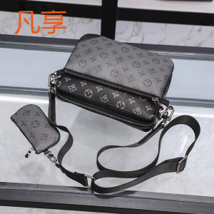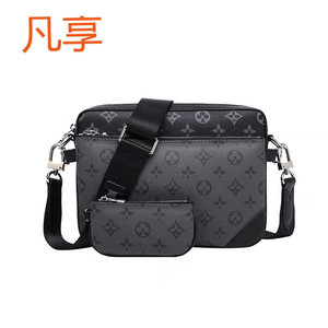 新商品のメンズ本革の軽豪華ファッションカジュアルな肩は斜めに黒い三合一の黒い武士の手にまたがって、郵便差の男性カバンを持っています。
