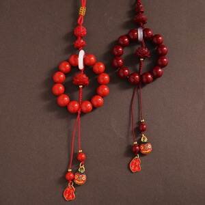 レトロ辰砂カーペンダント辰砂蓮中国風半手作りペンダント車の干支年ジュエリーペンダント