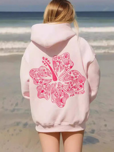 2025年新バージョンヨーロッパサイズレディースオフショルダースリーブスレッドハワイハイビスカスブランドスウェットシャツパーカープリント