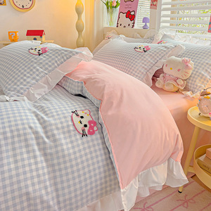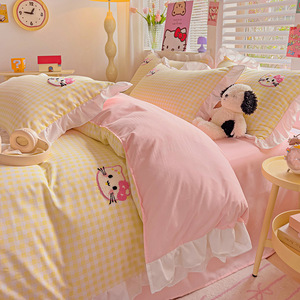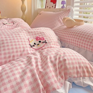 2025 新しいウォッシュコットンタオル刺繍 4 ピースレースガールプリンセススタイル学生寮ベッドシーツキルトカバー