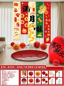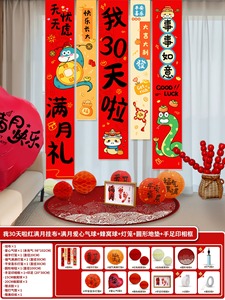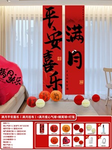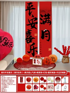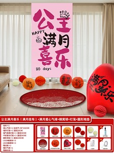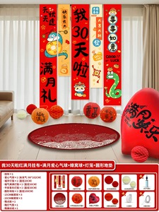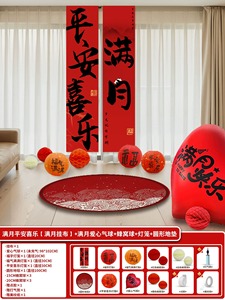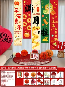 私は赤い満月吊り布30日+満月ラブバルーン+ハニカムボール+ランタン+ラウンドフロアマット+手と足跡フォトフレーム