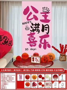 プリンセス満月ハッピー満月吊り布+満月ラブバルーン+ハニカムボール+ランタン+ラウンドフロアマット+手形と足形フォトフレーム