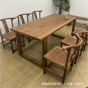 新しい中国式の古い楡の木の大きい板の机の長方形の事務の机は会議を相談してテーブルのテーブルのお茶台の背もたれの椅子を勉強します。