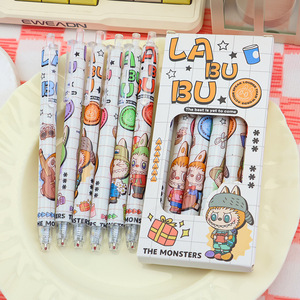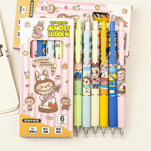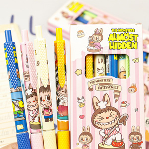 高颜值ラブブプッシュボタンペン漫画風可愛い学生用0.5mm速乾性筆記ペン中性ペン黒ペン