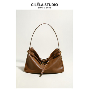 第一層植物タンニン鞣し牛革ホーボー脇下バッグ、レトロ通勤用本革レディースバッグ、ハンドバッグ、ショルダーバッグ