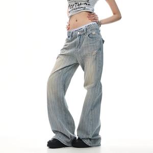 潮牌个性复古水洗竖条纹牛仔裤男女宽松美式高街cleanfit裤子春夏