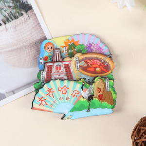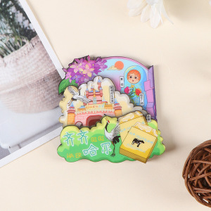 全国の都市の冷蔵庫はオーダーメードの木のゴムのアイデアの漫画の観光文創の観光地区の記念品の磁気を貼って貼ります。