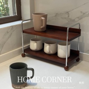 中古収納ラックキッチンウォーターカップラック無垢材雑貨収納ラック寝室二層スキンケア製品香水収納ラック
