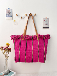 现货沙滩包旅行托特大包包时尚简约流苏妈咪包女包单肩包欧美大条